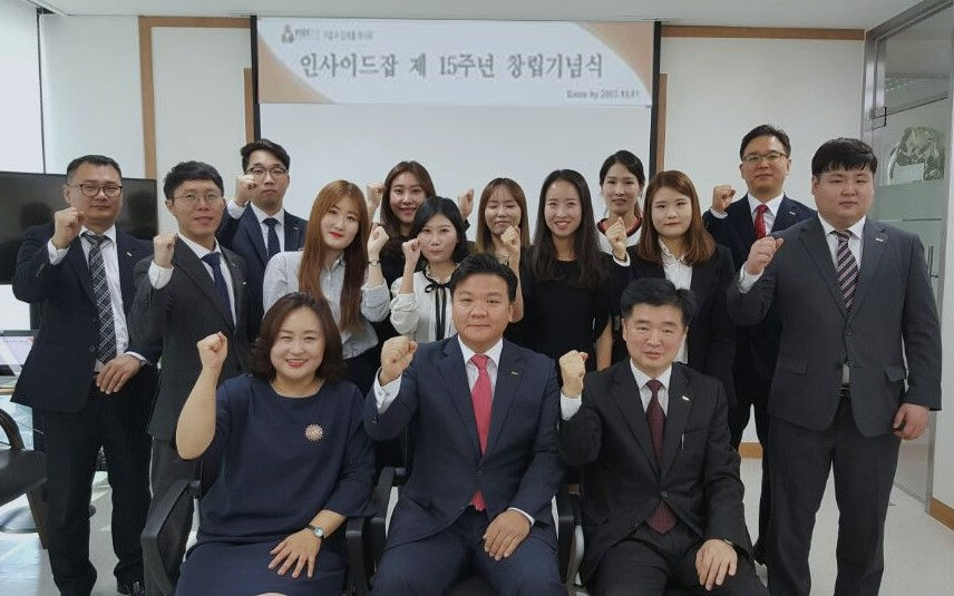 (주)인사이드잡은 2003년 10월 1일 창립하여 창립 15주년을 맞이 하였습니다. (주)인사이드잡은 뜻깊은 창립 15주년을 맞이하여더욱더 발전하는 인사이드잡이 되도록 노력할 것이며, 그동안 인사이드잡을 아껴주신 협력사와 직원 여러분에게 무한한 감사를 드리며, 끊임없는 발전에 노력을 다할 것을 다시한번 확약 드립니다. 감사합니다.